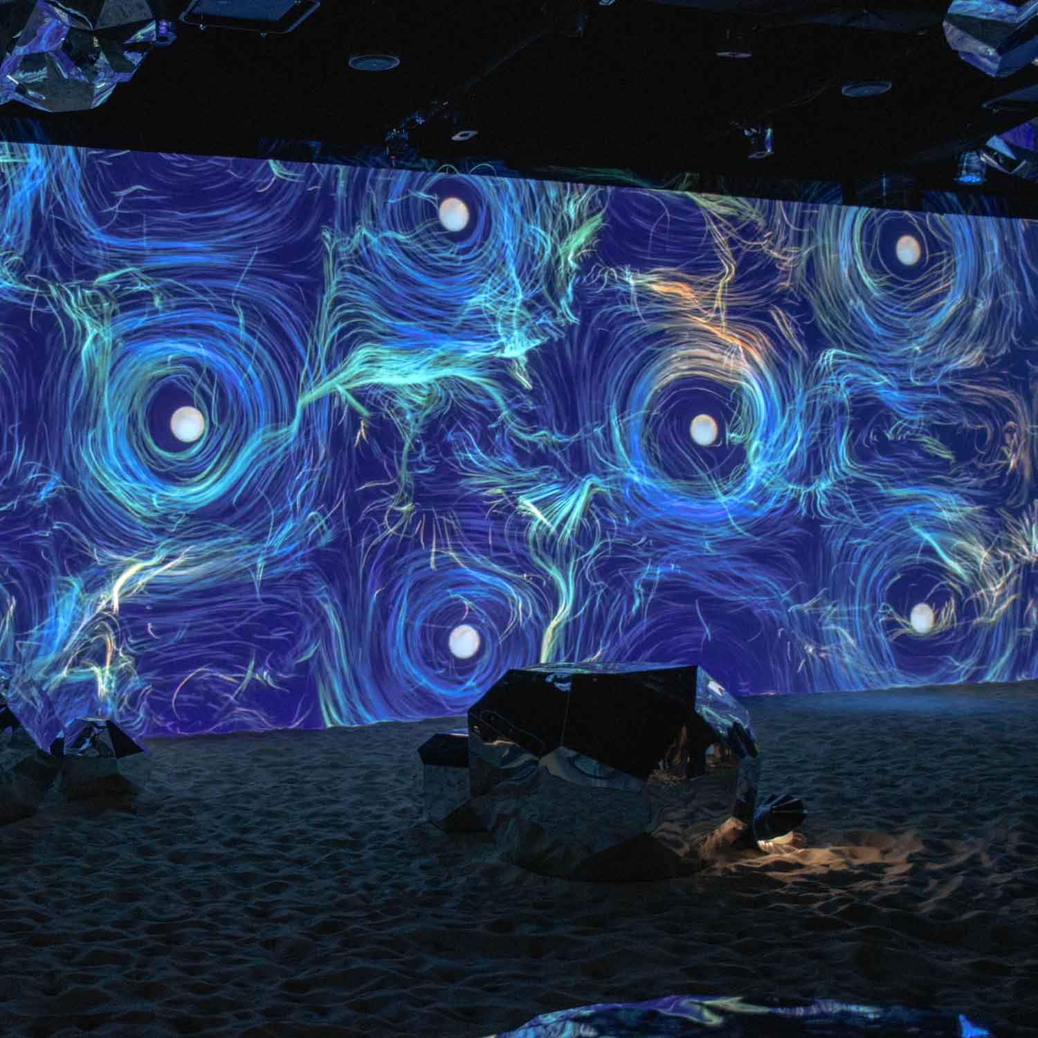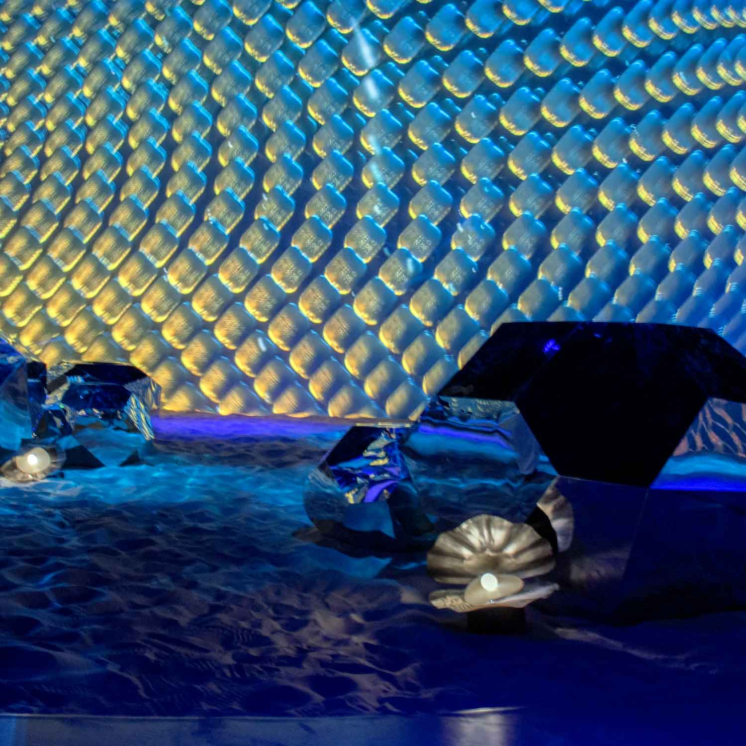 Our work focused on delivering bespoke music and sound design tailored to the scale and conceptual ambition of the installations. Designed by Indissoluble.com and visually developed by Tigrelab.com, the project demanded a sonic identity capable of enhancing spatial perception, guiding the narrative, and fully integrating sound within the audiovisual environment.